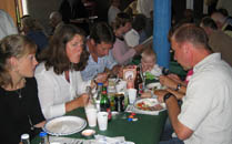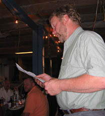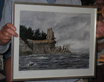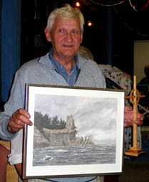 Stenkyrka var Årets socken 2003 och representerades av Per-Erik "Pricken" Karlsson. Han gratulerade från sin socken och överlämnade en tavla föreställande rauken Jungfrun i Stenkyrka. Lennart tackade på Gothems vägnar och lovade att vi i höst skall göra vårt bästa för att tillsammans med Lokrume Röda Kors-krets utse nästa års "Årets socken". |
