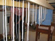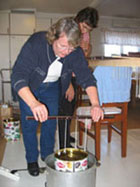 Med stor energi sattes arbetet igång, vekar mättes upp, klipptes till och monterades på pinnar som sen skulle doppas i ljusmassan och därefter förhoppningsvis bli till ljus.
