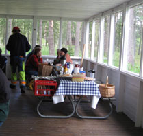 Vädrets makter var lite opålitliga just denna dag men efterhand som dagen gick så bröt solen igenom mer och mer och när arbetet var färdigt fram emot eftermiddagen så var det ett härligt väder. Alla jobbade på med glatt humör och efter några timmar var det mesta färdigt.