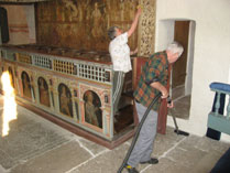 | 29 mars 2007 Restaureringsarbetena börjar bli färdiga Restaureringsarbetena i kyrkan börjar nu bli färdiga. Just nu pågår städning inför invigningen på palmsöndagen.