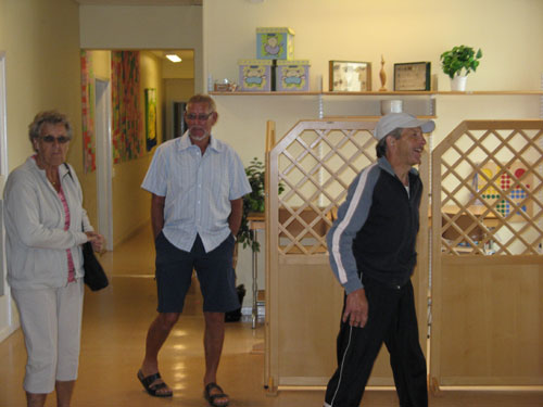 I bakgrunden Lennart Andersson, elev 1940-1946 i samspråk med Leo Lövdahl, elev 1947-1954.