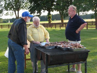 Lasse bagarn med sällskap väntar på att lammköttet ska bli varmt