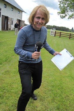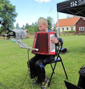 David Andersson spelade dragspel och svarade säkert och med humor på reportern Johannes Hallboms frågor.
