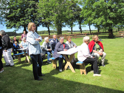 Olav Lindahl och Mona Wahlgren berättade om bygdegården och hur den kunde renoveras för några år sen med hjälp av bidrag från Kommunen och Boverket men också med ovärderlig hjälp från gothemborna som ställde upp helhjärtat och hjälpte till.
