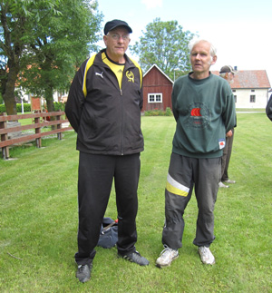 Ove Bjersander och Göte Kristiansson från Norrlanda följde varpatävlingen. |