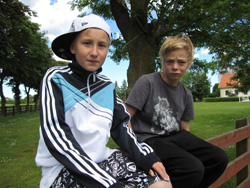 Två glada grabbar, Bradley Hellstenius från Vallentuna och Axel Boström från Täby, sommarboende vid Åminne ville gärna vara med på bild |