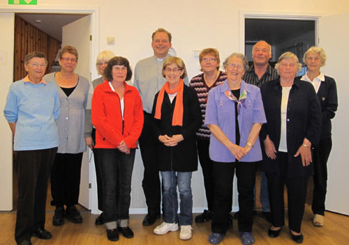 Fr v: Klara Williamsson, Roma, Elisabeth Kristiansson-Werkelin, Norrlanda, Ulla Bjersander, Norrlanda, Ingrid Pettersson, Gothem, kursledaren Julius Mehler, Ann-Marie Lindahl, Gothem, Åsa Karlsson, Gothem, Astrid Johansson, Gothem, Kjell-Åke Stenström, Hejdeby, Inga Andersson, Gothem och Elsie Eriksson, Gothem.