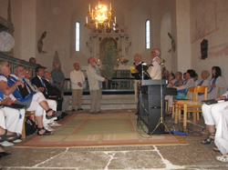 Församlingens präst Ragnar Svenserud hälsade alla välkomna och därefter följde en rad vackra sånger framförda av kören under Kjell-Åkes ledning. Gemensamt sjöngs också psalmerna ”I denna ljuva sommartid” och ”Den blomstertid nu kommer”. Se program nedan.