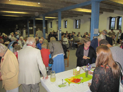 Samtliga närvarande inbjöds därefter till en gemensam stund i Prästladugården där Röda Korset bjöd på kaffe med dopp. Många hörsammade inbjudan och Prästladugården fylldes av församlingsbor som kommit för att tacka Kjell-Åke Stenström när han nu slutar sin tjänst. Maj-Lis Silvén, ordförande i Gothems Rödakorskrets tackade Kjell-Åke för hans utmärkta arbete och överlämnade en blomma. Ytterligare ett tack framfördes av Lennart Andersson från församlingsborna bl a för Kjell-Åkes arbete vid de månatliga träffarna i församlingshemmet och han överlämnade också en blomma. Flera andra församlingsbor framförde också ett varmt tack till Kjell-Åke och flera gåvor överlämnades till honom. Ragnar Svenserud avslutade sen samvaron i den välfyllda Prästladugården.