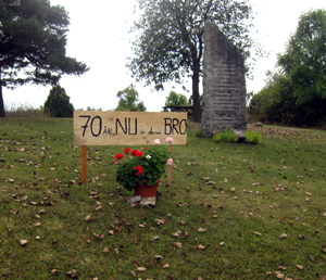 Lennart hade redan på förmiddagen satt upp en skylt vid minnesstenen om att det är 70 år sen bron invigdes.
