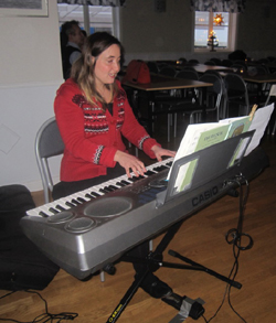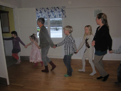 ...kom och underhöll alla barn på julgransskakningen i bygdegården i lördags. Det dansades runt granen och både barn och vuxna deltog av hjärtans lust. Anna Lööw-Norrby ledde sången som ackompanjerades av Emma Lindström. När dansen sen var avklarad kastades granen ut.