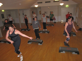 En gång i veckan träffas ett gäng och gör Step Up i Bygdegården. Det är verkligen fullt ös, med härlig musik och full koncentration bland deltagarna. Ledare för det hela är Jessica Hermansson som med glad och inspirerande stämma håller takten.