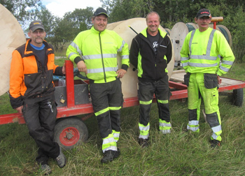 I lördags samlades ett glatt gäng för att röja för fibern på Gothemhammar. 15-20 personer jobbade hela dagen från tidig morgon till sen kväll med att röja så att grävningen sen kan göras utan hinder. Vid lunchtid samlades alla vid Stefan Ekströms fastighet för att äta ärtsoppa och varmkorv med bröd som Doris Pettersson ordnat. Efter ytterligare några timmars jobb var det dags för eftermiddagskaffe som Marie Wahlgren fixat. Arbetet med röjningen fortsatte sen till sena kvällen.