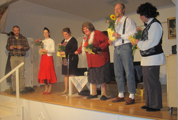 Hela ensemblen fr v regissören Daniel Lindström, Anna Lööw Norrby, Lillemohr Lindby, Åsa Karlsson, Åke Gustafsson och Emma Lindström.