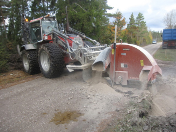 ...hade grävarbetet med fibern hunnit fram till Arumsvägen. Man grävde över vägen med ett stort fräshjul och vägen var avstängd ca 1 timme innan jobbet var klart. Grävning pågick också samtidigt vid Tummungs.