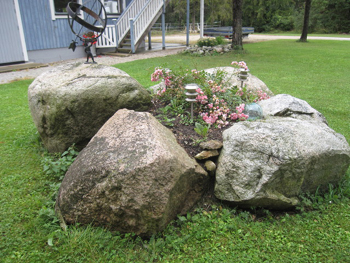 ...om man tar några stenar, placerar dom tätt tillsammans, lägger lite jord i mitten och planterar rosor. Denna fantastiskt vackra skapelse finns hos Margareta och Gunnar Hermansson vid Botvalde.
