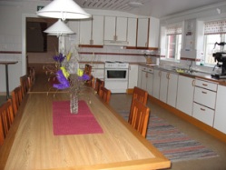 Vid mindre sammankomster går det bra att hyra endast köket för t ex styrelsemöten och liknande. 15 personer ryms runt bordet i köket.