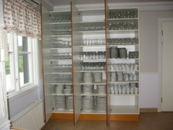 Vi har glas, porslin, bestick, stolar och bord för 120 personer. I det stora ljusa köket finns 2 st spisar och en stor och effektiv diskmaskin. Det finns gott om avställningsytor.