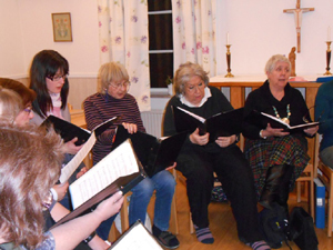 Ena handen plinkar på pianot andra dirigerar kören.Men var är karlarna? Dom är tre för tillfället men blir gärna flera och tjejerna håller med. Tycker man det är skoj att sjunga ska man ta chansen och vara med i gänget, kille som tjej gammal som ung. I kören är alla välkomna inga inträdes prov eller uppsjungningar krävs, alla får vara med.