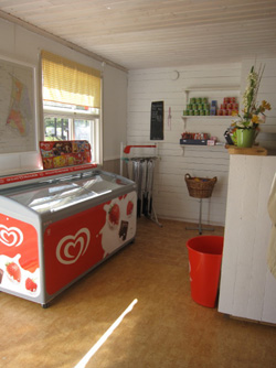 Utsikten från caféet är fantastisk...I caféet serveras kaffe med hembakat bröd och lättare maträtter. Naturligtvis kan man också köpa glass. |