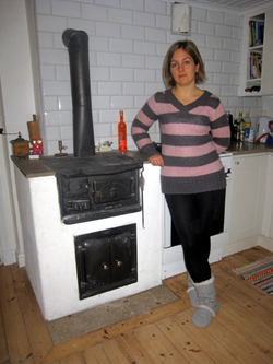 Hon har haft en dröm om att skaffa ett eget hus på landet och när det här huset vid Gajrvide blev till salu så slog hon till. Extra roligt var det ju att det låg i mammas hemsocken. Andrea har med god hjälp av bl a mamma Yvonne renoverat och förbättrat huset och hon har verkligen lyckats få till ett smakfullt och trivsamt hem. Att hon har ett konstnärligt öga är inte att ta fel på, hon har blandat gammalt och nytt och det hela har verkligen blivit jättefint. Redan innan hon köpte huset hade hon bestämt att hon måste ha en vedspis och det fanns i huset.