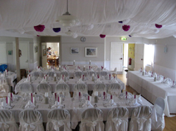 I bygdegården hade bruden arrangerat en fantastiskt vacker dukning. Bröllopsmiddagen hade lagats av brudparet och deras föräldrar och ett 60-tal gäster var inbjudna till bröllopet. På kvällen var det brudvisning och brudparet tågade ut till tonerna av Gotländsk brudmarsch framförd av spelemännen Helen Wahnström och hennes son Edvard. Många hade samlats för att se brud och brudparet såg själva till att alla fick smaka gotlandsdricku med kringla. Det blev en härlig bröllopsfest som pågick ända fram till småtimmarna. Dagen efter åkte brudparet på bröllopsresa till Thailand. Vi önskar Martina och Rickard lycka till och hoppas att dom får många och lyckliga år tillsammans.