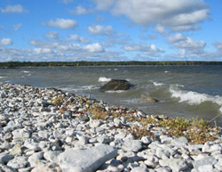 På norra sidan av Gothemhammar ligger den natursköna och sevärda klapperstensstranden.