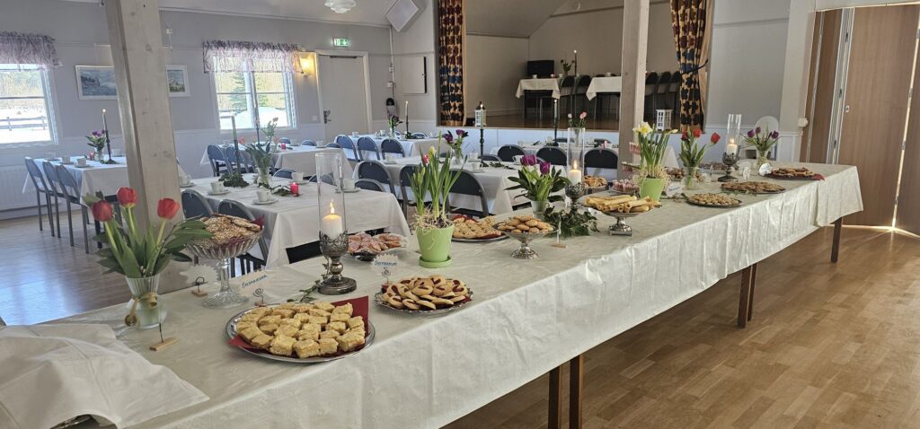 Men så glada både vi och besökare var i går när borden var vackert dukade och alla kakor lät oss väl smaka.
